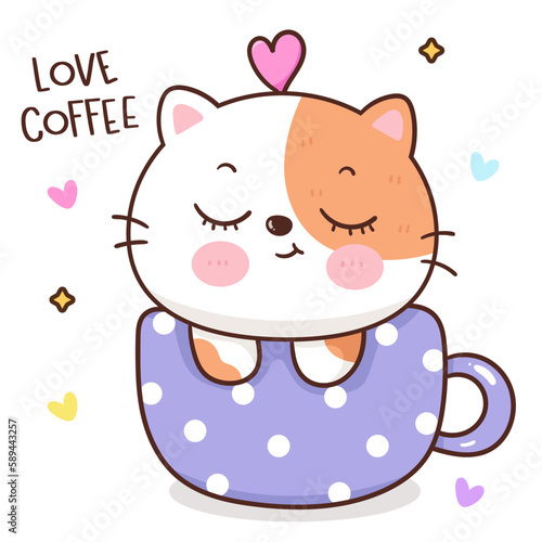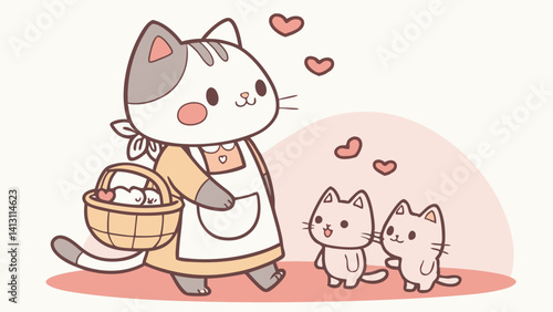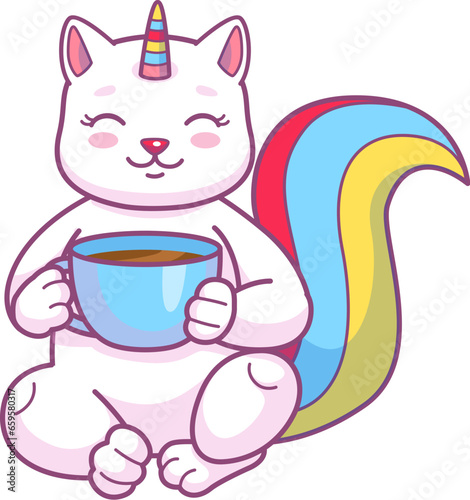 Roztomilý kočka vektor. Kreslené zvíře. Ilustrace postavy kotě. Legrační pet jíst suché jídlo z mísy s obědem ikonu izolovaných na bílém pozadí