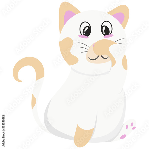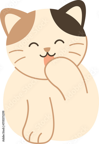 Roztomilý kočka vektor. Kreslené zvíře. Líné kotě charakter ilustrace. Legrační pet lízání mytí paw ikona izolovaných na bílém pozadí
