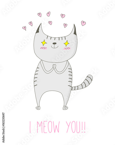 Roztomilý kočka vektor. Kreslené zvíře. Ilustrace postavy kotě. Legrační pet spí v zadní ikonu izolovaných na bílém pozadí