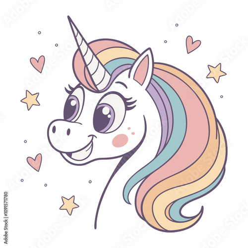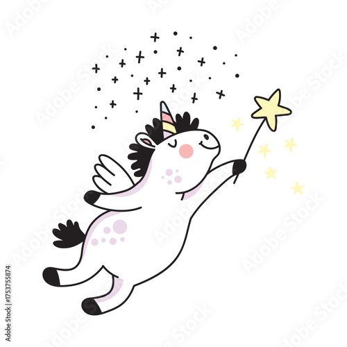 Roztomilý jednorožec vektor. Dítě kůň karikatura ikona. Okouzlující usmívající se pony zvíře izolovaných znak na bílém pozadí