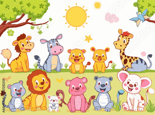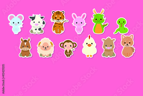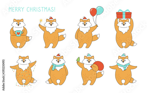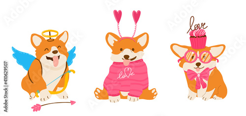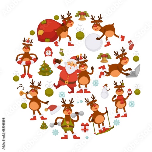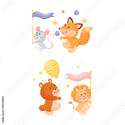 Šťastný kráva kreslená postavička set, plochý vektor izolované ilustrace. Roztomilé hospodářské zvíře, maskot s lahví mléka a sklem. Funny cow collection pro etiketu na balení mléčných výrobků.