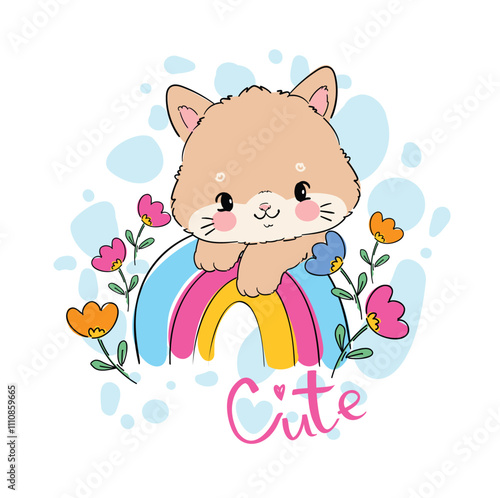 Roztomilý víla vektorové ilustrace. Kreslená kouzelná dívka postava s křídly. Pohádková princezna v kostýmu běžící držení a vonící květina. Fantasy malý lesní skřítek izolovaných na bílém pozadí