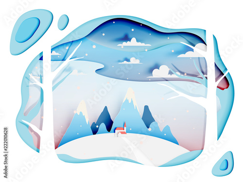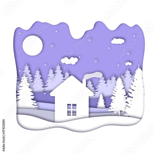 Vektor vrstvený papír řez řemeslné styl pohádkové složení roztomilé magické víla silueta sedí na větvi stromu, noční hvězdnou oblohu.