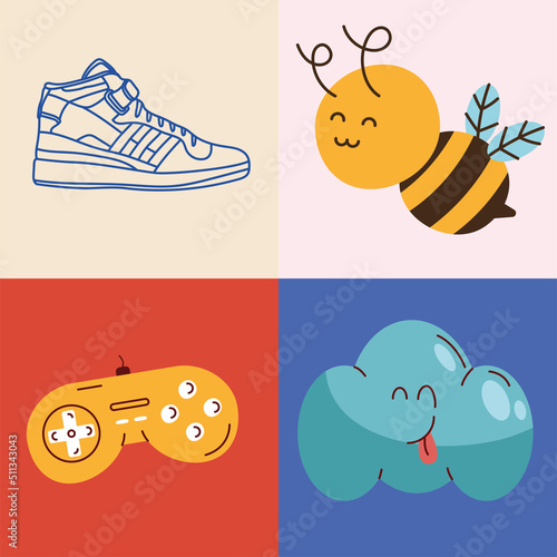 Roztomilý legrační šváb charakter pod domácí pantofle izolovaných na bílém pozadí. Kreslený plotice scéna vektorové ilustrace. Vyděšený malý hmyz