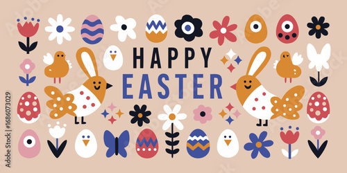 Velikonoční zvířata. Vektorové ilustrace izolovaných na bílém pozadí. Roztomilý mýval ježek jelen sova liška veverka a medvěd s malovanými velikonočními vejci, jarní květiny na přání, nálepka, tisk.