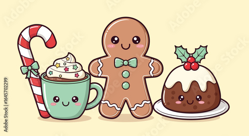 Roztomilý horký zimní nápoj znak vektorové sady. Šťastný usměvavý kawaii sváteční čaj, kakao nebo rozpuštěná čokoláda s marshmallow ve skle, šálku nebo hrnku izolované ilustrace. Různé sezónní sladký koktejl