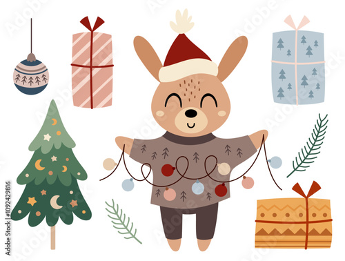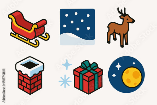 Roztomilý lama alpaka zvíře narozeniny oslava ploché vektorové ikony. Legrační Lama charakter sedí v blízkosti dárkové krabičky a usmívající se kreslený ilustrace izolovaných na bílém pozadí