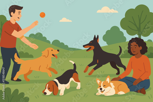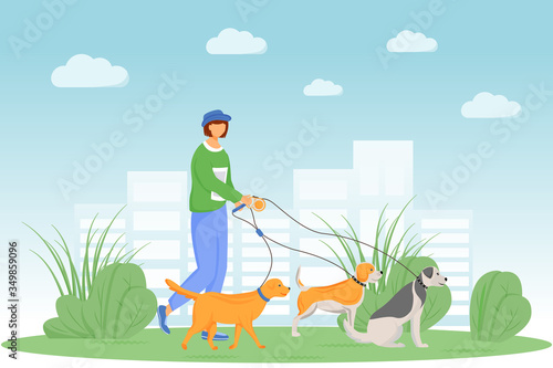 Roztomilá holčička dítě strach psa kreslený vektorové ilustrace. Strach dítě křičí a utíká od rozzlobeného špatného mazlíčka. Nebezpečná situace a vyděšené děti