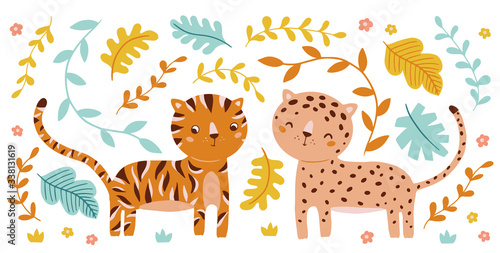 Roztomilé monstrum kreslená postavička Konstruktor kit, ploché vektorové izolované ilustrace. Legrační části těla zvířat a tvorů. Cizí oči, uši, rohy, ústa, zuby, nohy, ruce, ocasy pro stvoření monster