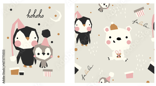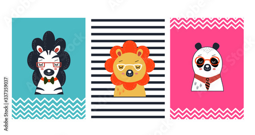 Roztomilé pozvánky na párty panda. Vektorové šablony sada s legrační pandy se srdcem, balón, kobliha, dárková krabička, řetězec vlajky pro party dekorace a ručně psaný text.