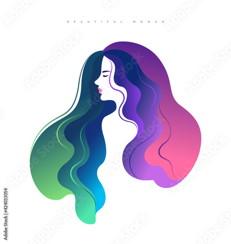 Roztomilá kočka chytající motýly uvnitř siluety ženské hlavy, vektorové ilustrace v papírovém uměleckém stylu. Pet lover myšlenky, představivost, sen.