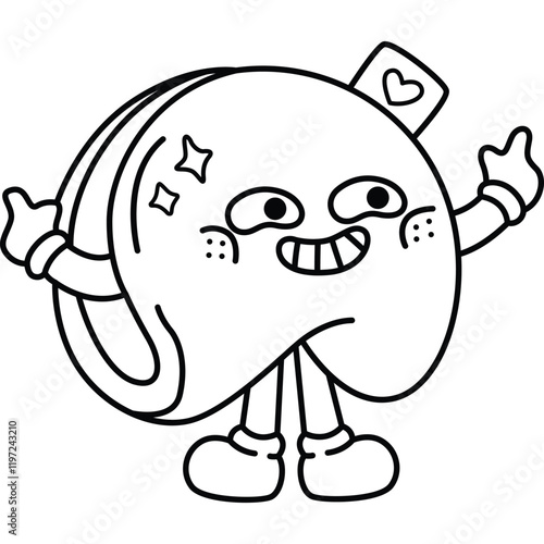 Roztomilý mýval vektor. Legrační lesní zvíře nosí sluchátka zpívající píseň v hřebenové kartáčku na vlasy karikatura ikona. Doodle znak ilustrace izolovaných na bílém pozadí