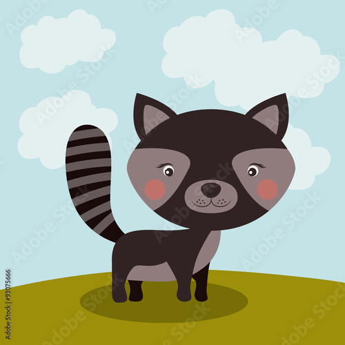 Roztomilý mýval vektor. Funny woodland animal character holding greeting placard cartoon icon ilustrace izolovaných na bílém pozadí