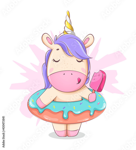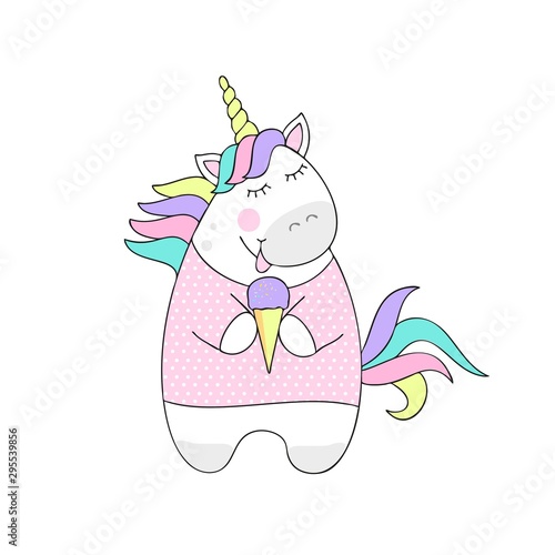 Roztomilý plachý jednorožec vektor. Dítě kůň karikatura ikona. Šťastný zvíře stojící s rukou na obličeji izolovaných znak na bílém pozadí