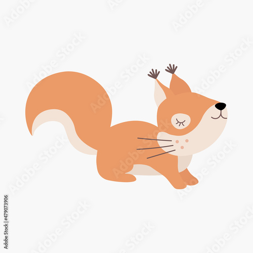Roztomilá veverka legrační postava spánek a odpočinek vektor. Rozkošný divoká zvěř maskot načechraný hlodavec s chlupatým ocasem izolovaných na bílém pozadí
