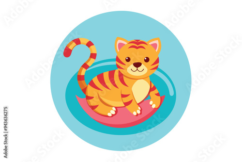 Roztomilý kočka vektor. Kreslené zvíře. Ilustrace postavy kotě. Legrační pet koupání koupání v bazénu ikona izolovaných na bílém pozadí