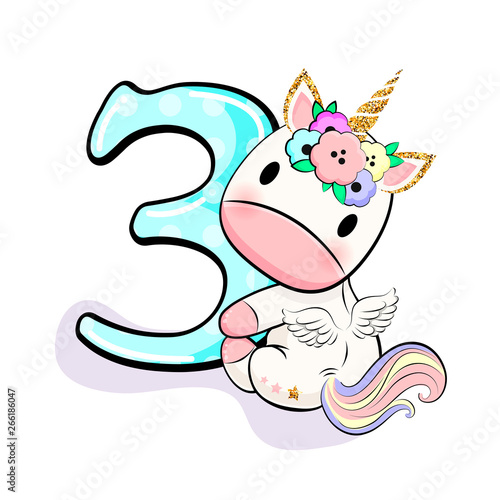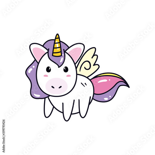 Roztomilý jednorožec vektor. Dítě kůň karikatura ikona. Šťastný magie zvíře izolovaných znak na bílém pozadí