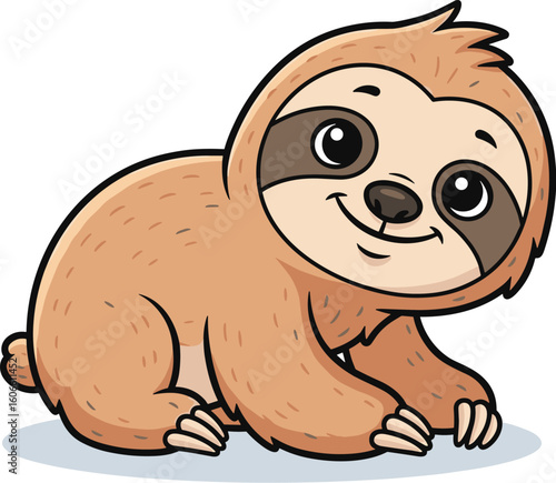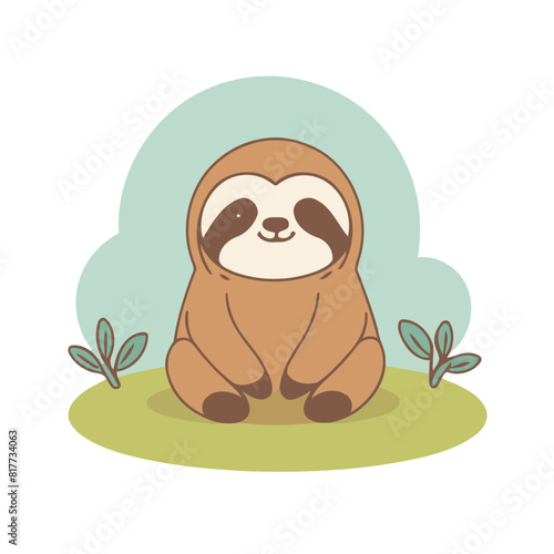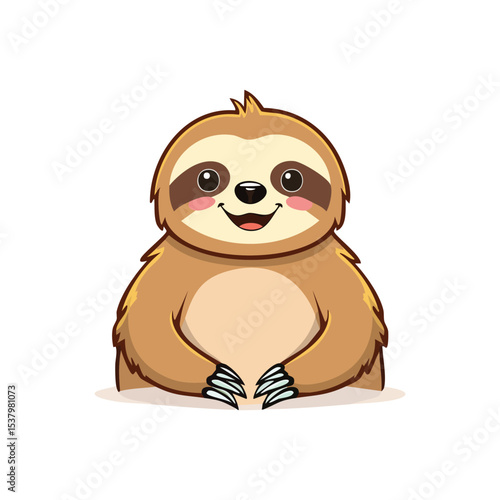 Roztomilý lenochod vektor. Kreslené zvíře s šálkem sedícím na ikoně větve stromu. Legrační líný dítě lesní charakter vychutnat kávu nebo čaj horký nápoj izolovaných na bílém pozadí