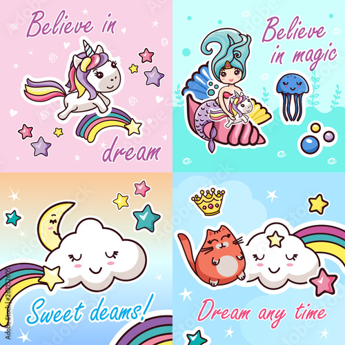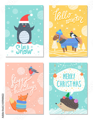 Vektorová sada karet s roztomilými divokými zvířaty a ručně psanými inspirativními citacemi. Vektorové ilustrace legrační zvířata veverka, ježek, sova, medvěd, Králík a jelen čtení knih.