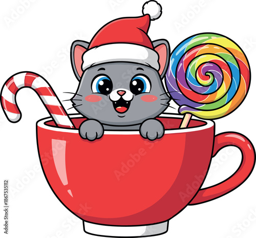 Zimní kočka v šátku a klobouku vektoru. Roztomilý pet zvíře ikona ilustrace. Kotě charakter v legrační Pletené Oblečení na Vánoce, Nový rok dovolená pozdrav sezóna karta doodle design izolovaných na bílém pozadí
