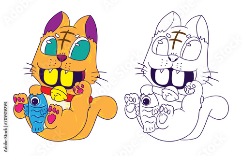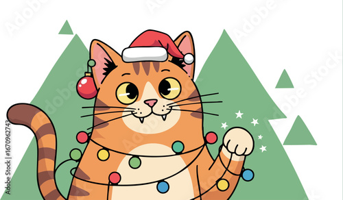 Zimní kočka v šátku, klobouk, rukavice, boty vektor. Roztomilý pet zvíře ikona ilustrace. Kotě charakter na Vánoce, Nový rok dovolená pozdrav sezóna karta doodle design izolovaných na bílém pozadí