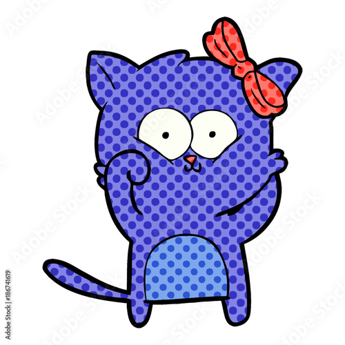 Zimní kočka v šátku vektoru. Roztomilý pet zvíře ikona ilustrace. Kotě charakter na Vánoce, Nový rok dovolená pozdrav sezóna karta doodle design izolovaných na bílém pozadí