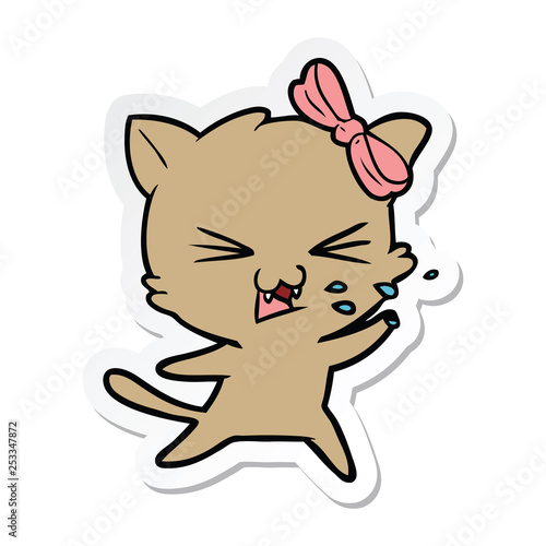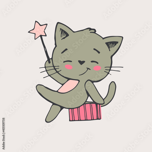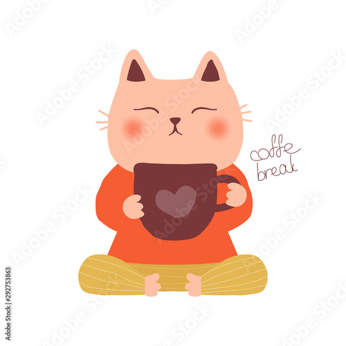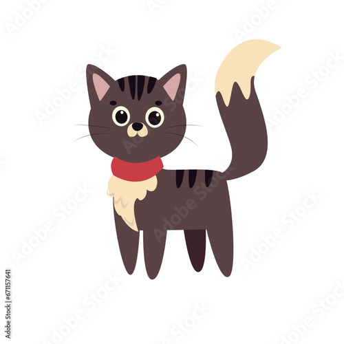 Zimní kočka v šátku vektoru. Roztomilý pet zvíře ikona ilustrace. Kotě charakter v legrační pletené oblečení radující se počasí pro pozdrav sezóny karta doodle design izolovaných na bílém pozadí