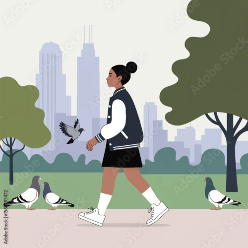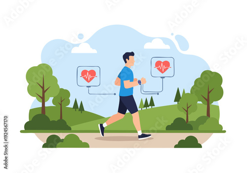 Život. Mladá žena běží v parku, ploché vektorové ilustrace. Denní ranní rutina, každodenní činnosti. Aktivní a zdravý životní styl, sport a fitness.