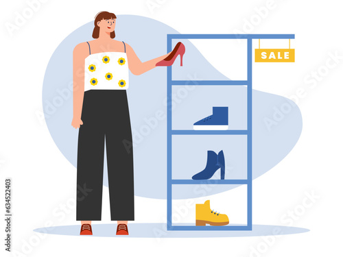Život. Mladá žena nakupuje potraviny, ploché vektorové ilustrace. Dívka stojící s nákupní taškou plnou potravinářských výrobků v obchodě s potravinami, supermarket. Každodenní rutina, každodenní činnosti.