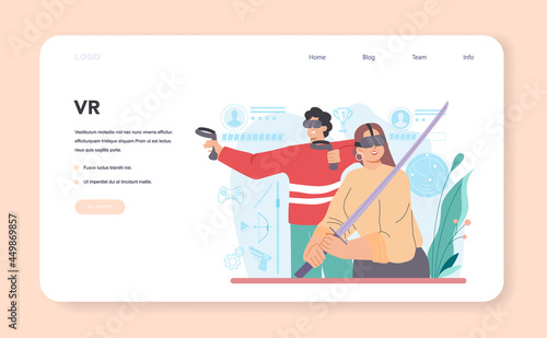 Denní ranní rutinní design vstupní stránky, sada šablon bannerů webových stránek, plochá vektorová ilustrace. Šťastná žena bere oblečení z šatníku na šaty a jít do práce v dopoledních hodinách.