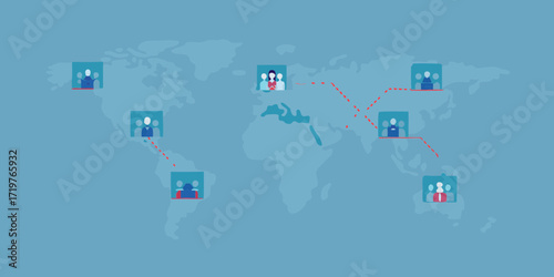 Datové centrum, vektorové izometrické ilustrace. Hosting, virtuální mapa světa globální schéma přenosu dat, koncept regálů serverových místností pro webový banner, webovou stránku atd.