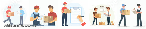 Vektorová ilustrace poštovního pracovníka s balíkem. Delivery people concept flat style design element, ikona izolovaná na bílém pozadí.
