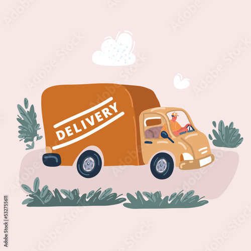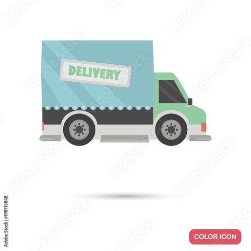Vektorová ilustrace malého dodávkového vozu. Koncept doručovací služby plochý designový prvek.