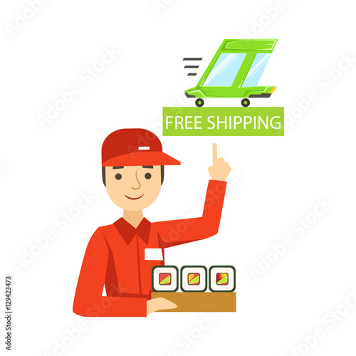 Doručovatel a ruční vůz plný lepenkových krabic. Vektorový plochý design ilustrace izolované na bílém pozadí. Koncept dodávky zásob pro webový banner, webovou stránku atd.