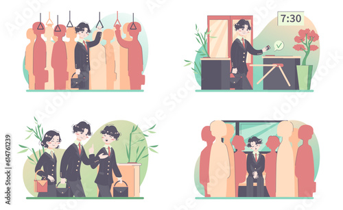 Demokratická volební kampaň proces vektorové plakáty set. Debata politických kandidátů, hlasování, politické projevy, shromáždění lidí. Koncepce demokracie. Muž a žena účastnící se národních voleb.