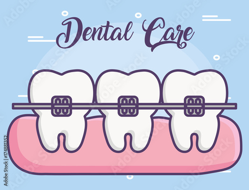 Zubní zuby rovnátka kroky instalace vektorové plakát ilustrace. Koncepce zubního lékařství, stomatologie a ošetření zubů