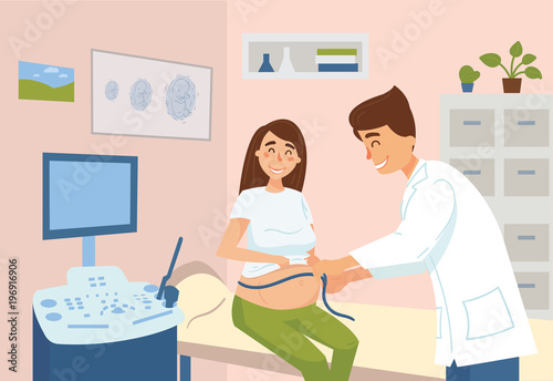 Zubař a asistent ošetřující zuby pacienta vektorové ilustrace. Muž s bolestí zubů u lékaře stomatologa jmenování. Koncept stomatologie