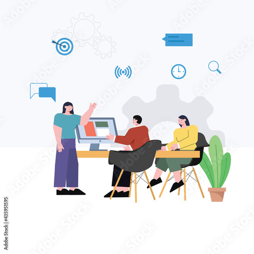 Vektorová ilustrace cestovatelského rodinného otce, matky a dcery. Turističtí lidé koncept plochý styl designový prvek, ikona izolované na bílém pozadí.