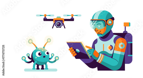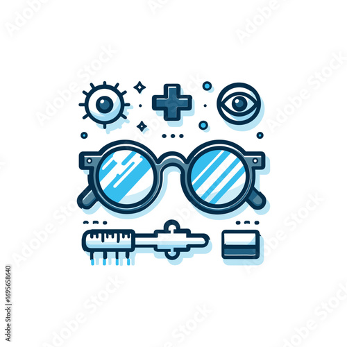 Detektivní služby vektorové ploché ilustrace. Lupa, oko, knír, klobouk, pouta, pistole, kouřovod kompas a důkazy. Špionážní zařízení, příslušenství pro webový banner, webové stránky