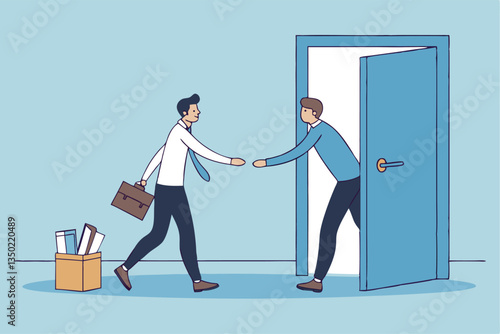 Ďábel deal koncept vektorové ilustrace. Dva podnikatelé si potřásají rukama. Podnikatel se dohodl s ďáblem.