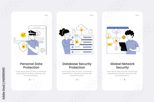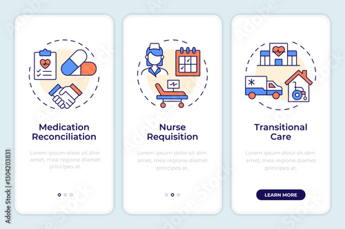 Diabetes mellitus mobilní aplikace onboarding obrazovky. Menu banner vektorová šablona pro vývoj webových stránek a aplikací. Koncepce monitorování a léčby glukózy v krvi.