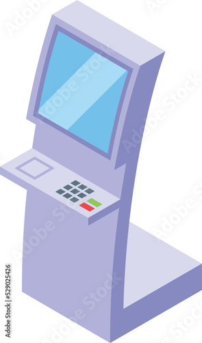Jiný samoobslužný kiosek na objednávku a platbu online realistická maketa. Moderní interaktivní stroje, volně stojící terminál a atm konstrukce vektorové ilustrace