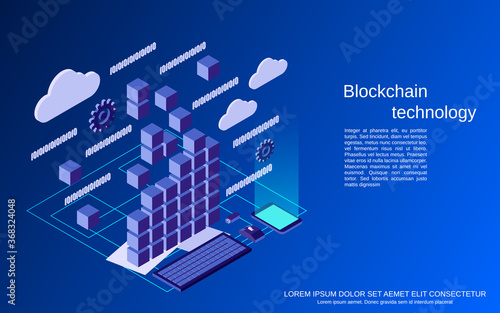 Plakát digitální technologie, šablona návrhu banneru. Vektorové izometrické ilustrace.