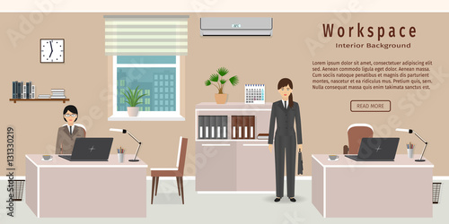 Vektorová ilustrace interiéru restaurace s recepční, návštěvníky sedícími u stolů a servírkou při objednávce. Plochý design.