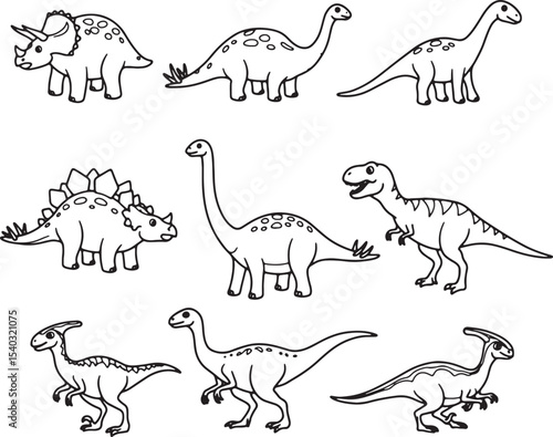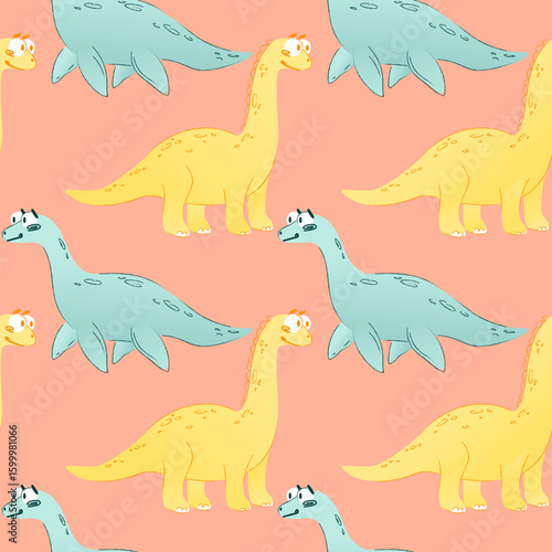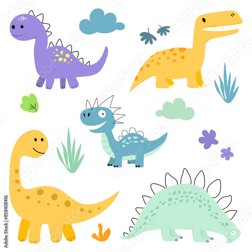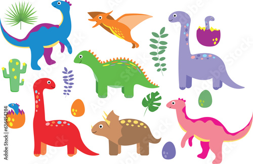 Dinosaurus kreslená postavička set, plochý vektor izolované ilustrace. Roztomilé růžové a modré dino, prehistorické zvíře, kolekce hraček.