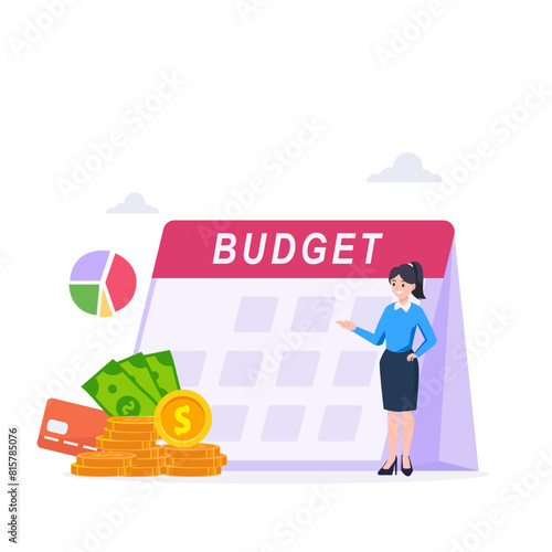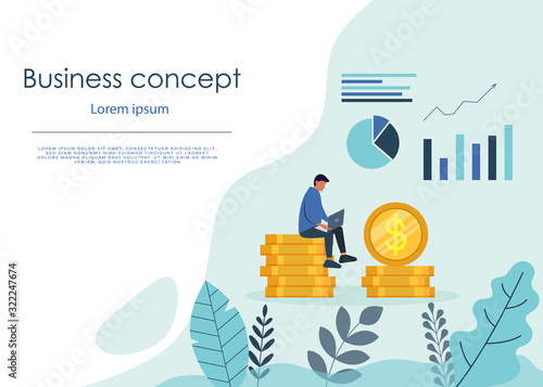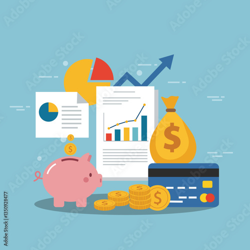Diplom, promoce klobouk, prasátko s penězi, žena pracuje na notebooku sedí na dolaru mince stack, ploché vektorové ilustrace. Studentská půjčka, úspora peněz na vzdělání, stipendium.