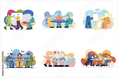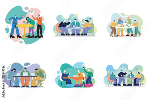 Osoby se zdravotním postižením s umělými rukama a nohama nebo protézou, slepá žena s vodicím psem, muž na invalidním vozíku vektorové ploché ilustrace. Handicapovaní aktivní mladí lidé pracují, chodí a sportují.