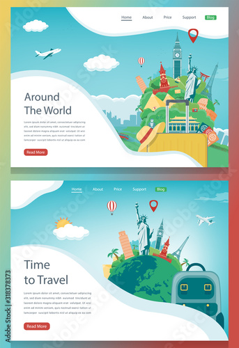 Objevte nový svět vektorové webové šablony, webové stránky a vstupní stránky design pro vývoj webových stránek a mobilních stránek. Papír řez automobil, pyramidy chrám dalších světových památek. Koncept cestování autem.