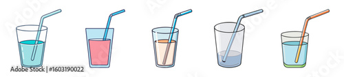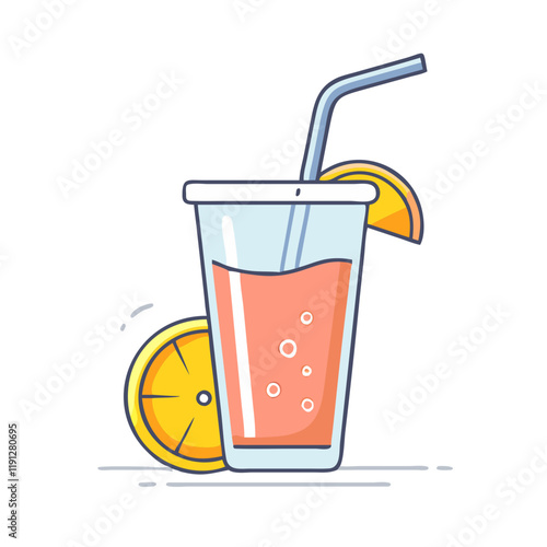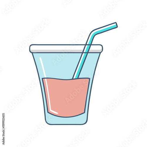 Jednorázové plastové nádobí vektor. Opakovaně použitelné nápojové sklo s ikonou slámy izolovaných na bílém pozadí
