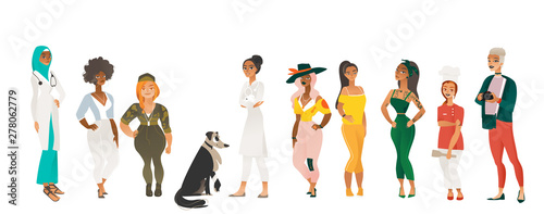 Různorodá skupina lidí izolovaných na bílém pozadí, vektorové ilustrace. Lidé různých ras a národů, muži a ženy stojící pohromadě. Multietnické a multikulturní společenství.